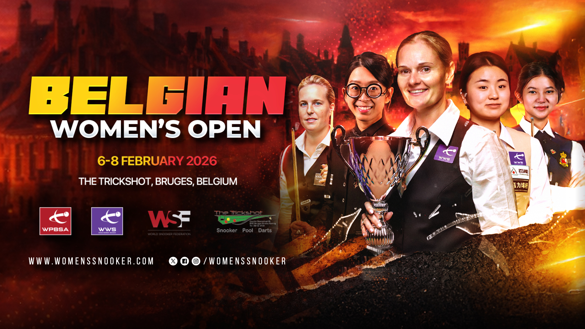 The World Women’s Snooker (WWS) Tour continues from this Friday with the sixth staging of the Belgian Women’s Open at the Trickshot in Bruges, Belgium.